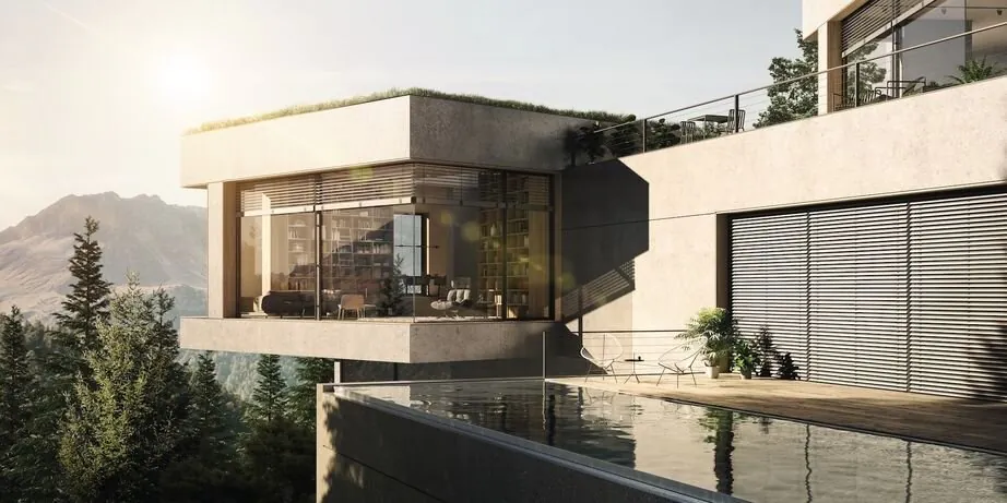 Freitragende Außenjalousie